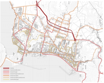 Esta solução pretende fazer escoar o fluxo de trânsito necessário, sem pôr em causa a circulação pedonal e de bicicleta tão necessárias à vida de uma zona habitacional. A proposta contempla ainda a criação de uma praça central para recreio e lazer dos habitantes da zona alta da cidade.
