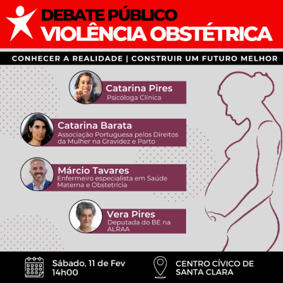 O Bloco de Esquerda vai realizar um debate público com o tema “violência obstétrica: conhecer a realidade, construir um futuro melhor”, no próximo dia 11 de fevereiro, à 14h00, no Centro Cívico e Cultural de Santa Clara. O objetivo é discutir o tema e encontrar medidas que possam prevenir e erradicar situações de violência obstétrica na região.
