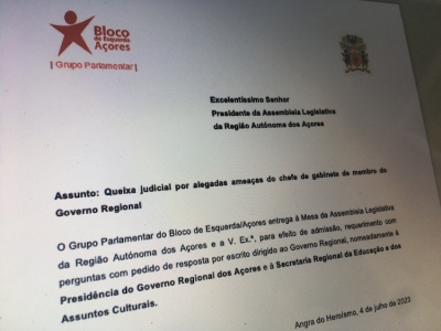 O Bloco de Esquerda quer saber se o Governo Regional mantém a confiança política no chefe de gabinete da Secretária Regional da Educação e dos Assuntos Culturais, que foi alvo de uma queixa-crime por coação relacionada com o condicionamento da liberdade de expressão e ameaças à integridade física, apresentada pelo jornalista e escritor Joel Neto.